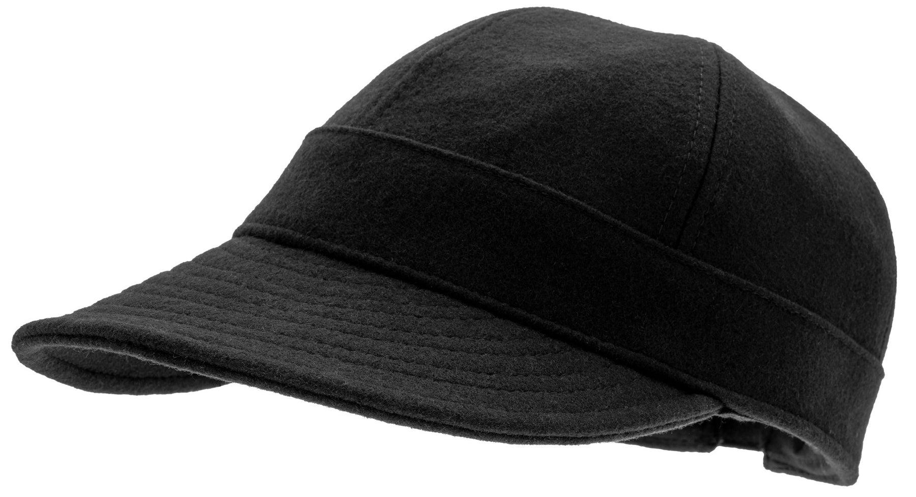 Svart baseballkeps med stor skärm som skyddar mot solen, tillverkad 100% ull som gör att den andas och värmer skönt under vår och höst.