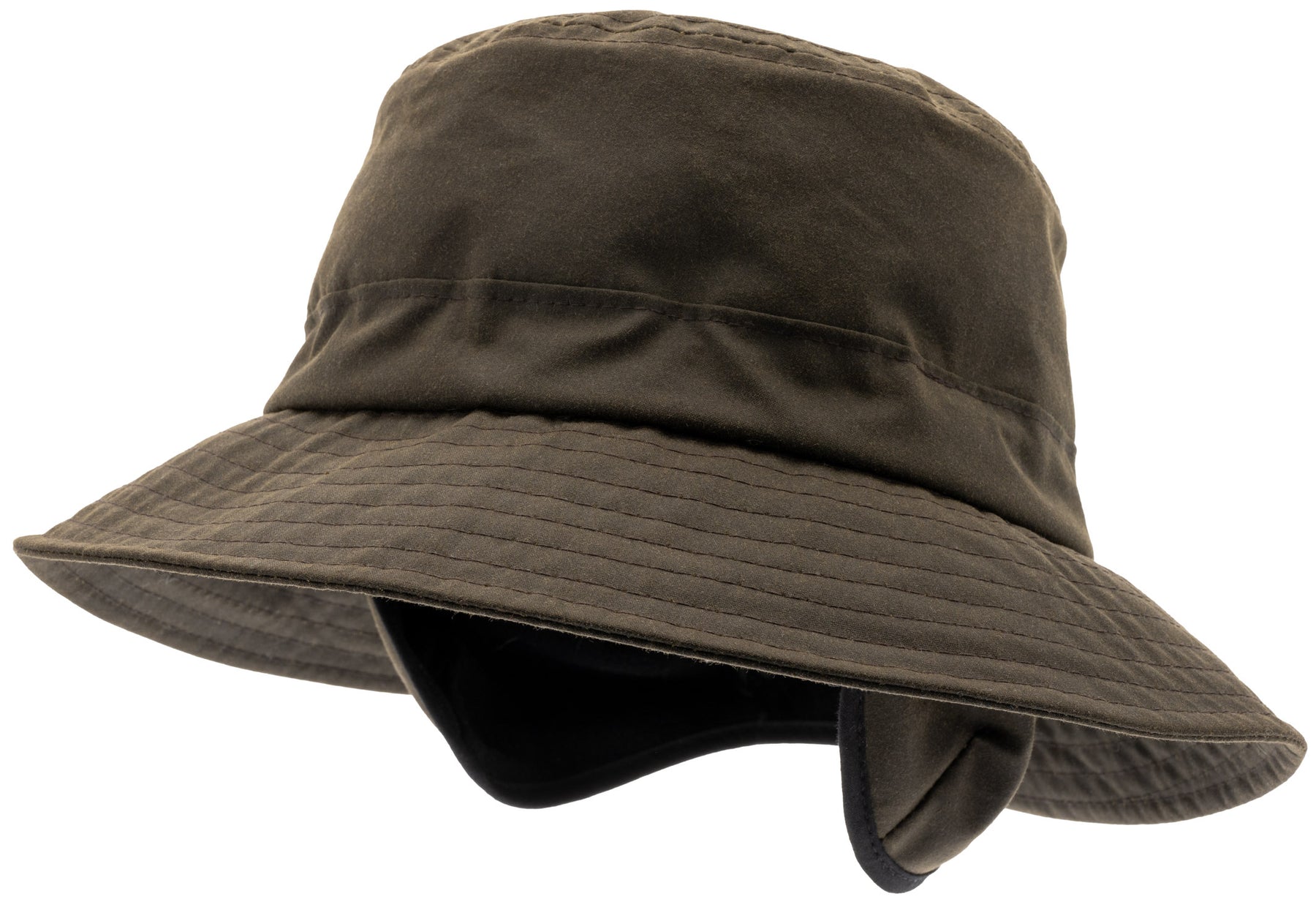 En vaxad grön fiskehatt i vintermodell med nedfällbara öronlappar för en sportig, lantlig stil. Perfekt för jakt och ett aktivt uteliv i alla väder.
