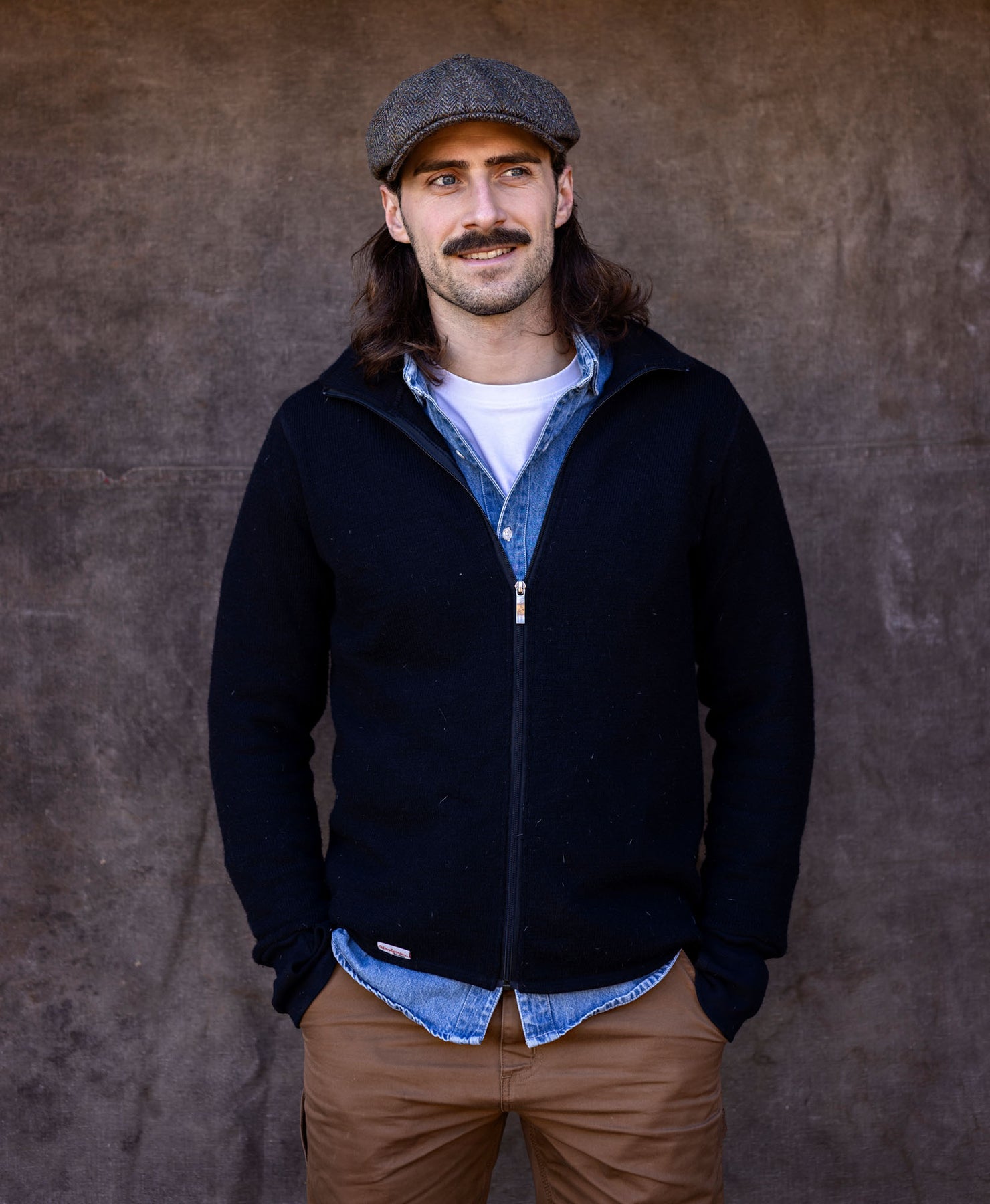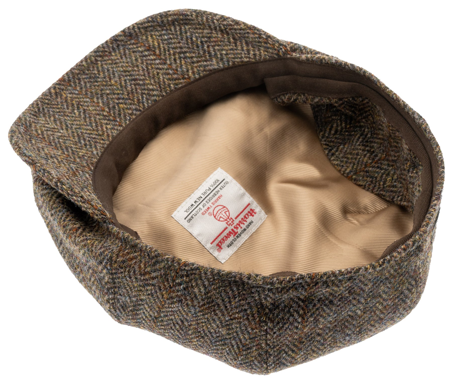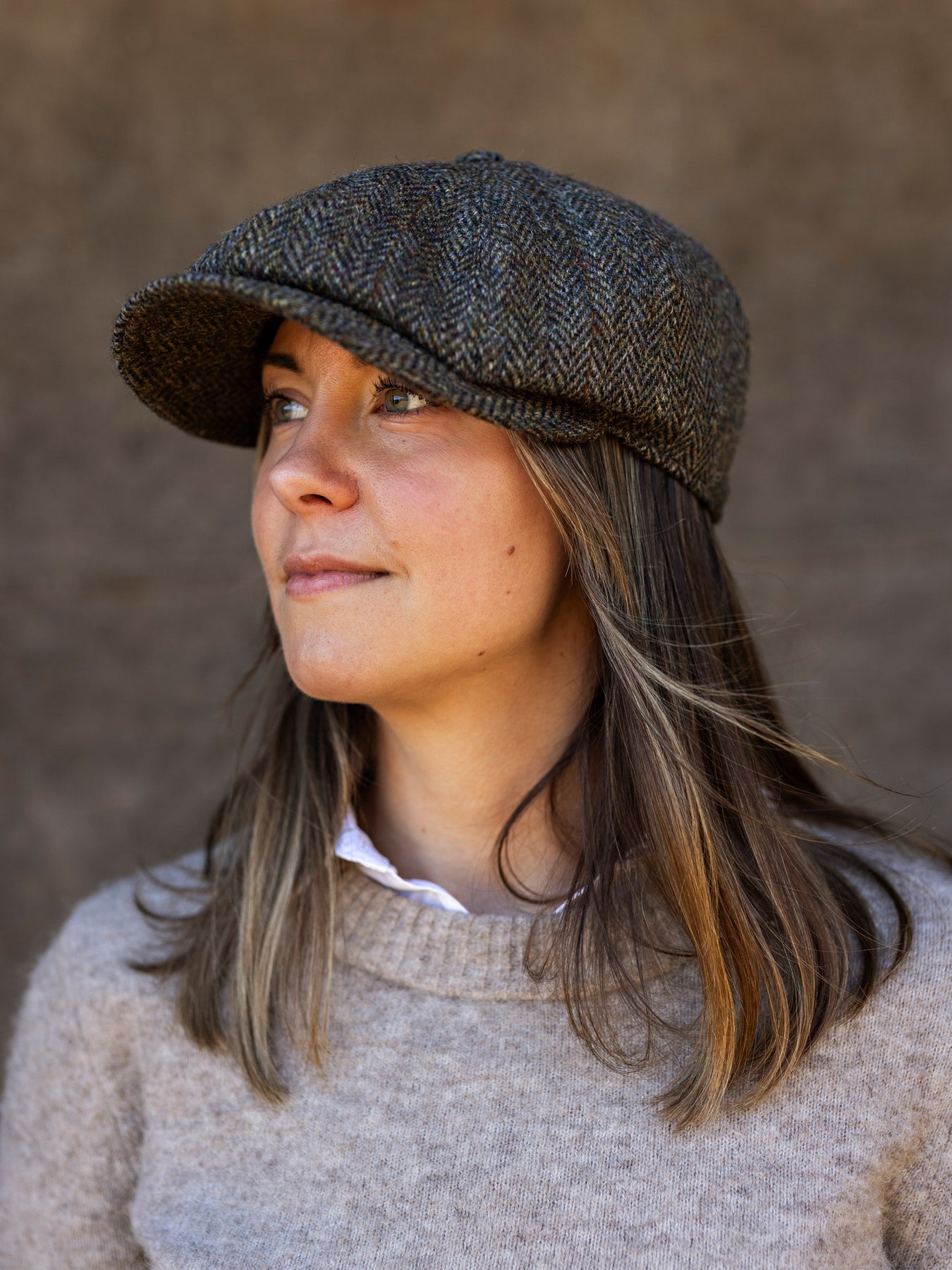 Aaron är klassisk 8-panels Newsboy cap i tidlös design. Kepsen är tillverkad i ett fiskbensmönstrat Harris Tweed tyg, med nedfällbara öronlappar för en sportig, lantlig stil.